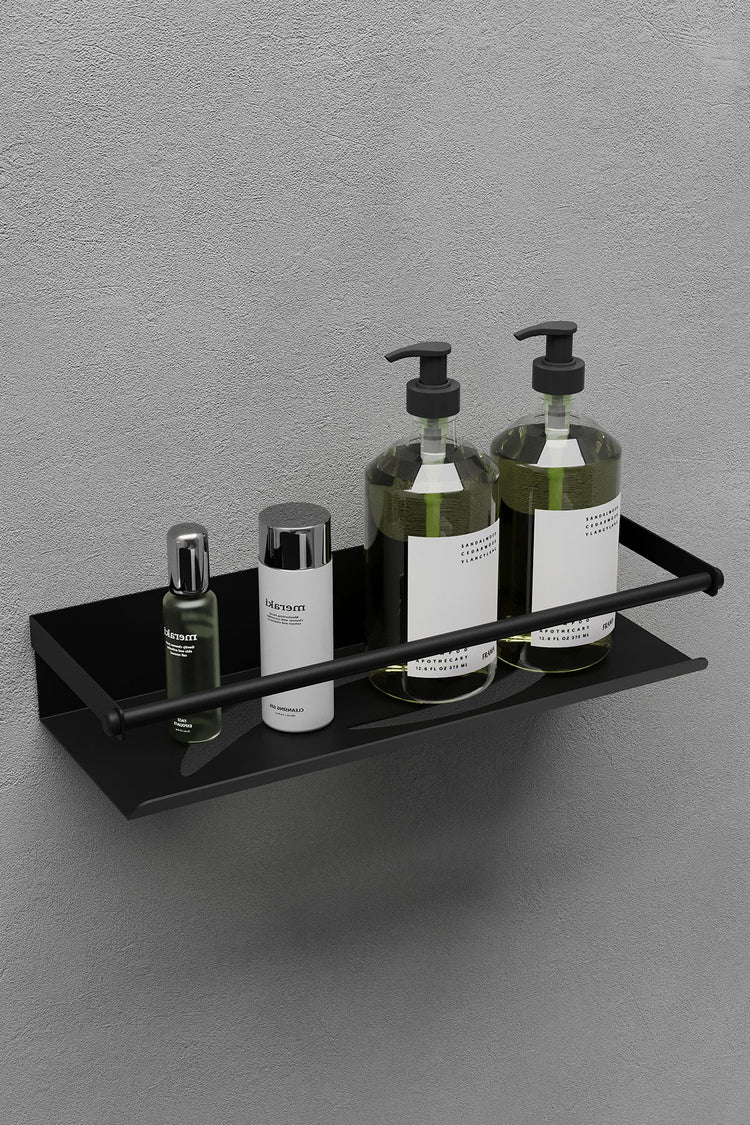 Banyo rafımızın rengi Mat Siyahtır. Rafımızın İnox Gri versiyonu mağazamızda mevcuttur.